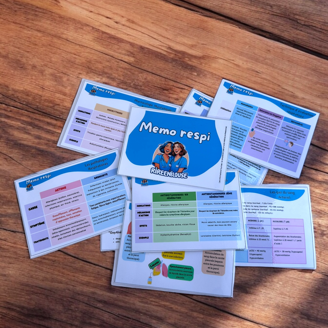 Optimisez votre prise en soins respiratoires avec ce Mémo ! Ce guide compact et coloré est parfait pour les étudiants infirmiers. Il inclut :